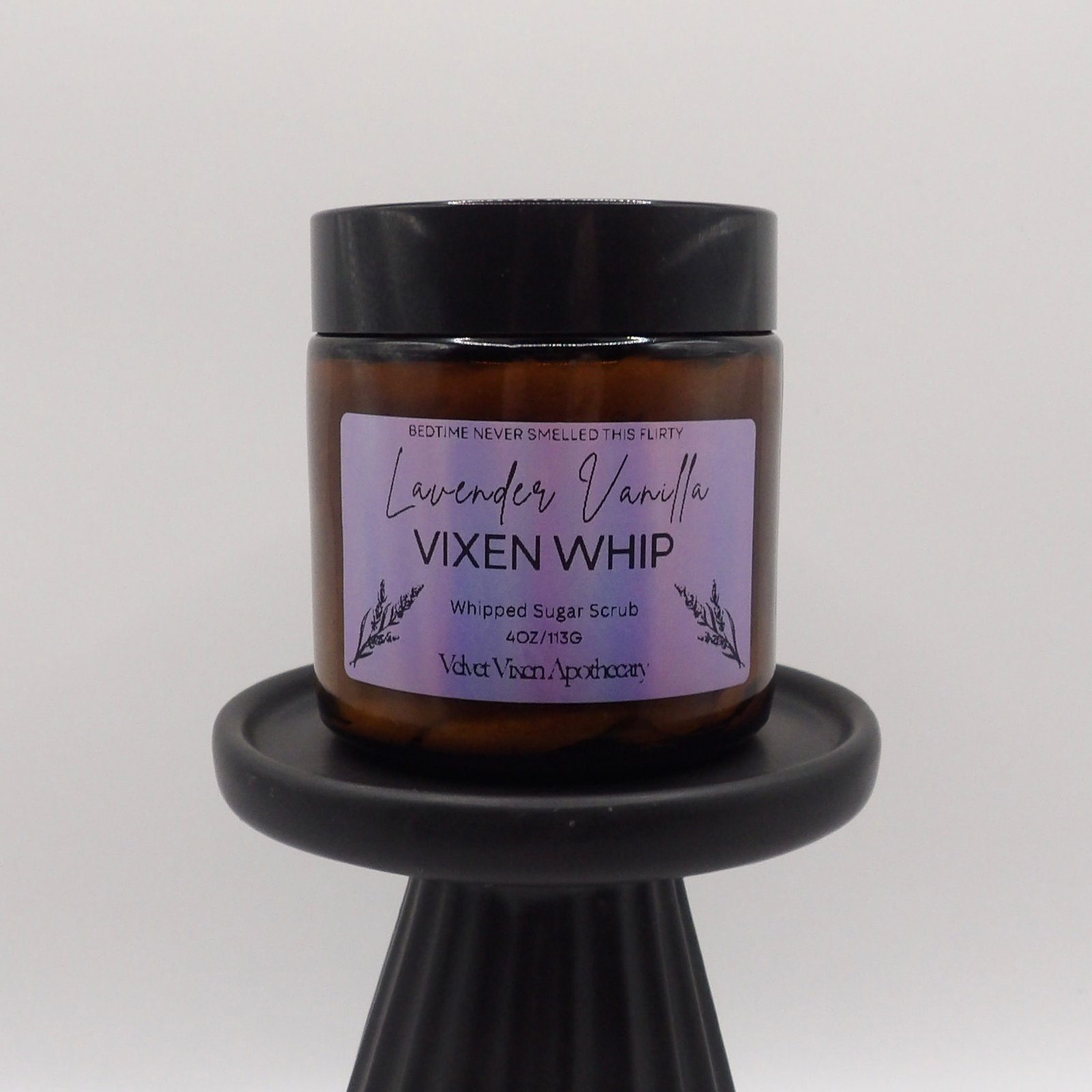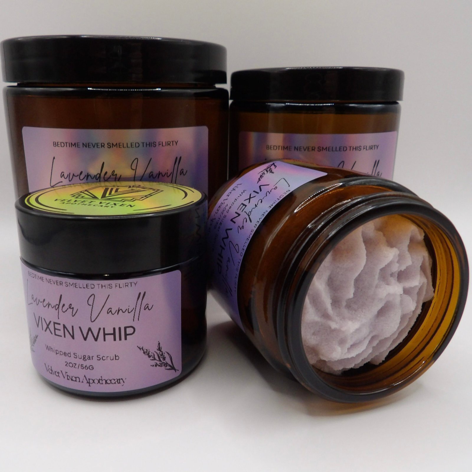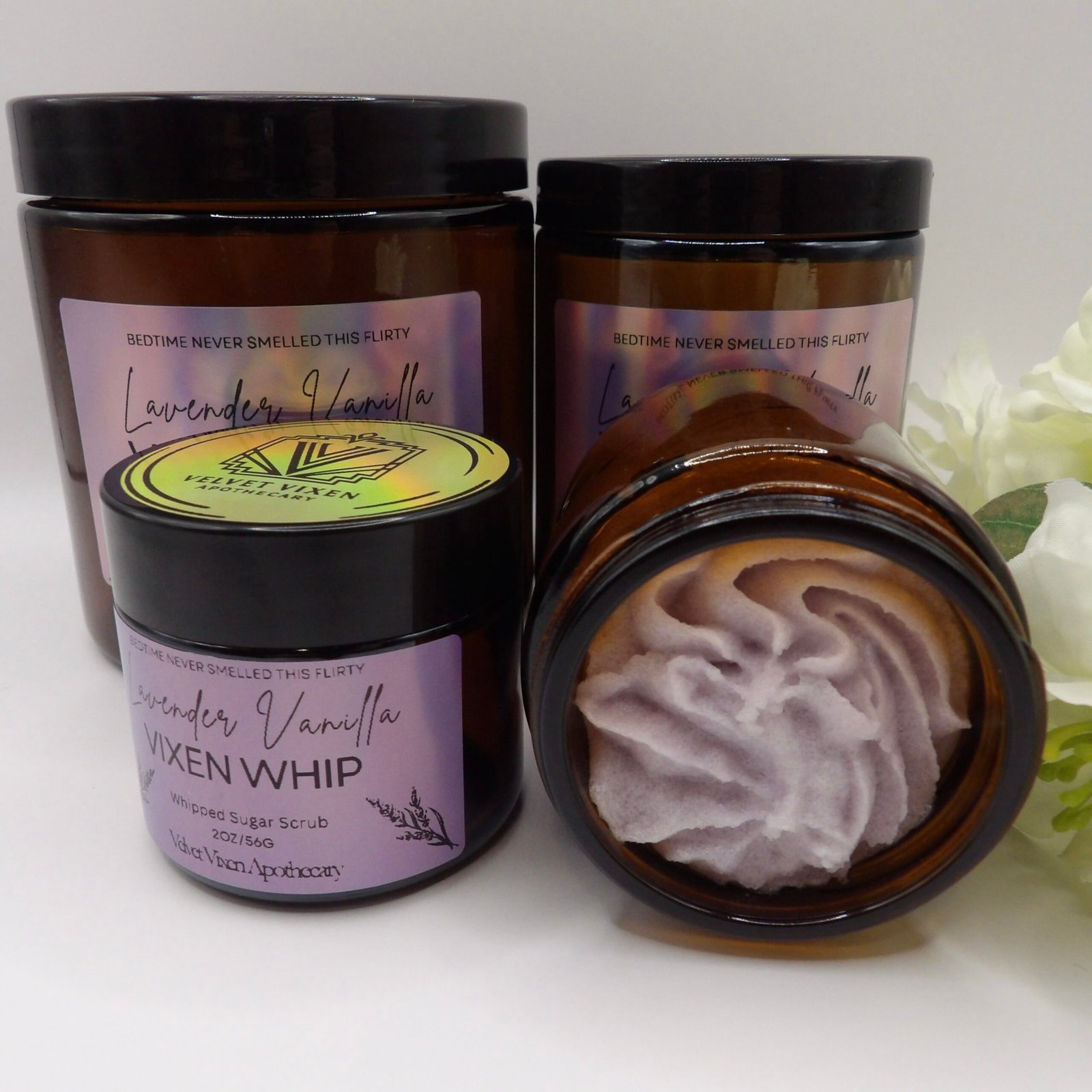 Lavender Vanilla Dream is your nightly escape. This whipped sugar scrub exfoliates gently, frothing into a lotion-like lather that soothes and seduces. Lavender’s calming touch blends with vanilla’s creamy sweetness, creating a scent that feels like a velvet hug and smells like bedtime bliss. Handcrafted for those who believe self-care should be soft, sensual, and a little cheeky.