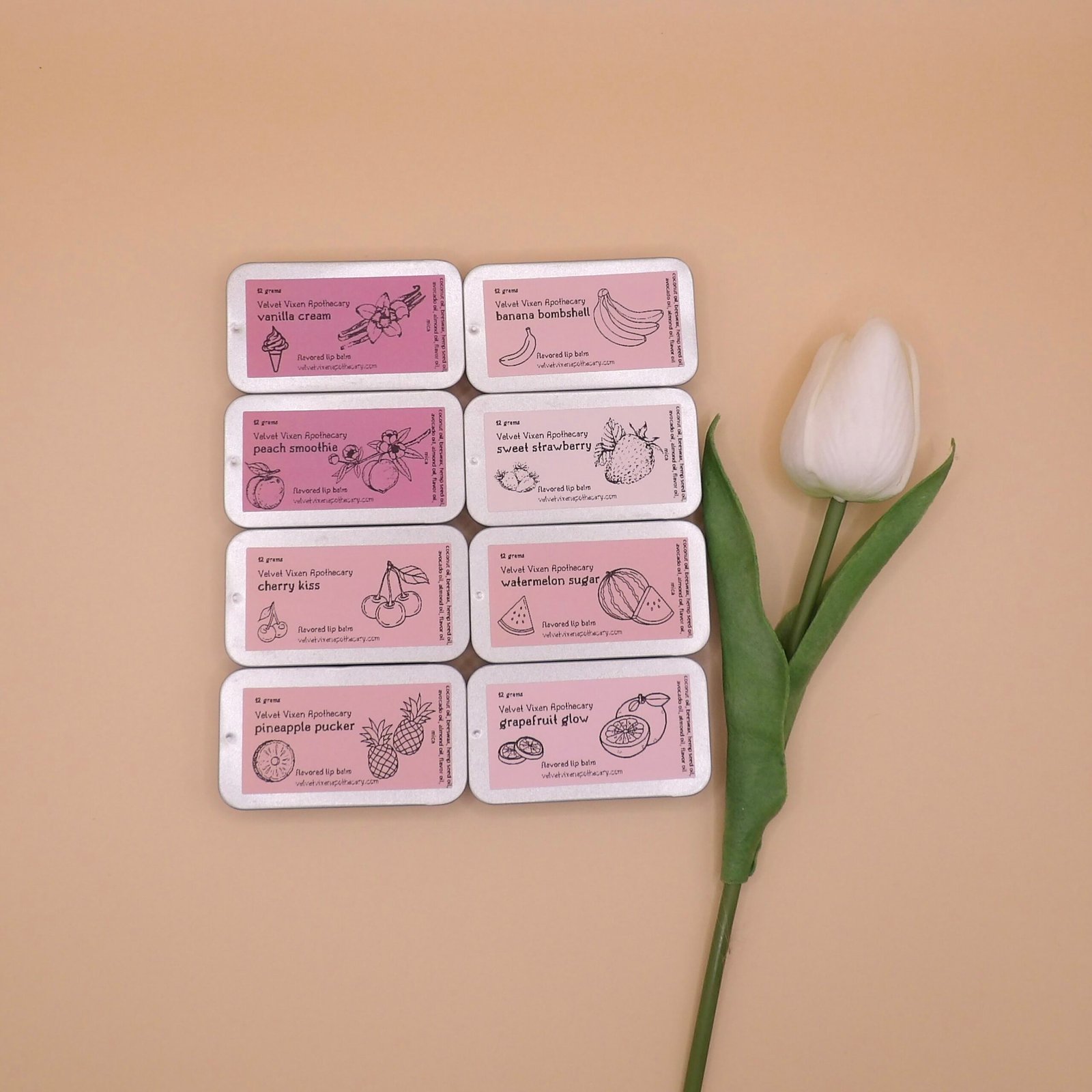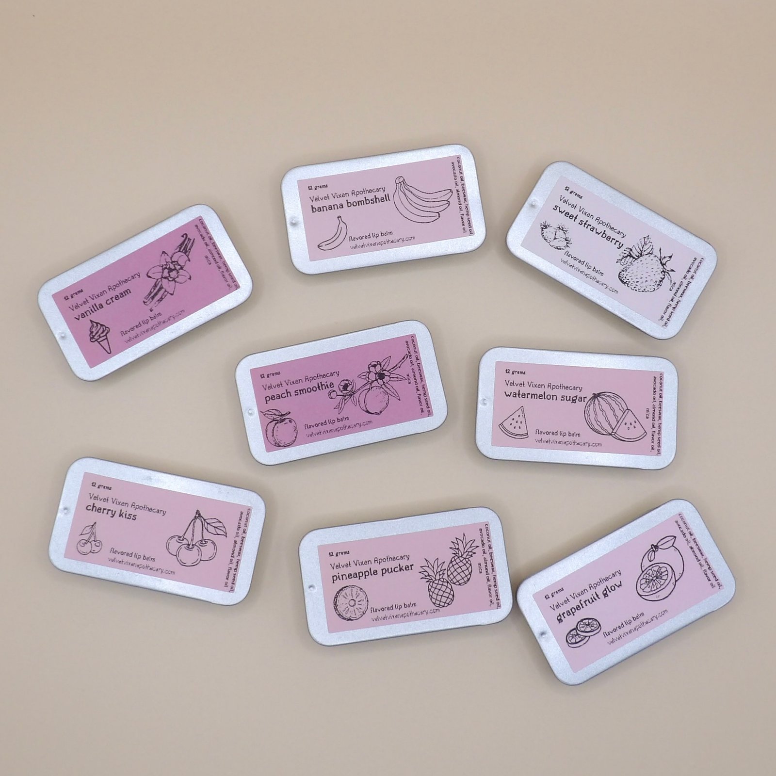 Sweet Strawberry, Pineapple Pucker, Watermelon Sugar, Cherry Kiss, Peach Smoothie, Banana Bombshell, Vanilla Cream, Grapefruit Glow